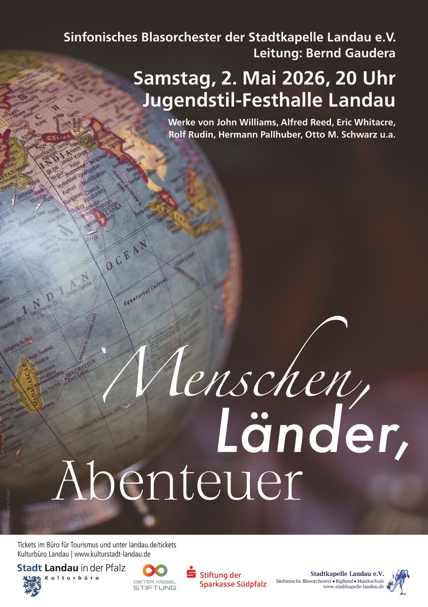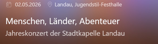 Das sinfonische Blasorchester der Stadtkapelle Landau lädt zu einer musikalischen Weltreise ein. Kommt vorbei und lasst euch von pulsierenden Rhythmen, exotischen Klängen und faszinierenden Melodien verzaubern.