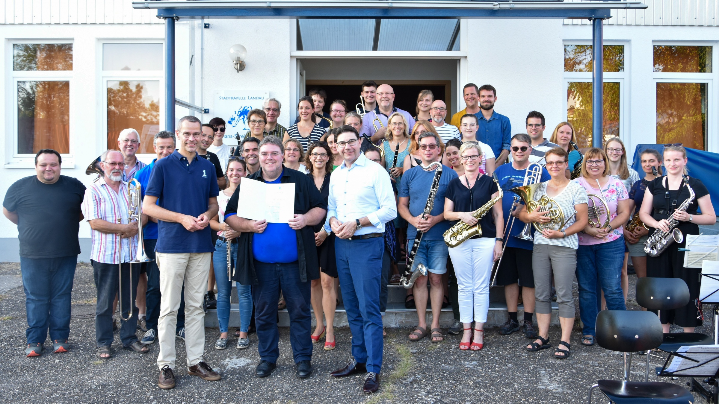 Presseinformation Nr. 543 der Stadt Landau vom 06.11.2019 Stadtkapelle Landau gibt Gastspiel in Partnerstadt Ribeauvillé – Bürgermeister Dr. Ingenthron: „Ouvertüre zum Jubiläum der Städtepartnerschaft 2020“ Zu Gast bei Freunden: Auf Einladung der Stadt Ribeauvillé gab die Stadtkapelle Landau am Samstag, 2. November, ein Konzert in Landaus Partnerstadt. Mit einem exzellenten Programm aus der Zeit zwischen der Französischen Revolution und dem Lebensgefühl der 1920er Jahre, aber auch einem Medley aus der Zeit der Neuen Deutschen Welle, entführte das Sinfonische Blasorchester unter der Leitung von Dirigent Bernd Gaudera die zahlreich erschienenen Zuhörerinnen und Zuhörer auf eine musikalische Reise. Im Publikum befanden sich nicht nur der Bürgermeister von Ribeauvillé, Jean-Louis Christ, und alle Beigeordneten der Stadt, auch Landaus Bürgermeister Dr. Maximilian Ingenthron, der als Dezernent für die städtischen Partnerschaften zuständig ist, hatte das Orchester zu diesem Konzertereignis begleitet. Dabei waren die Musikerinnen und Musiker bereits am Morgen aufgebrochen, um ein attraktives Tagesprogramm in der Partnerstadt zu erleben. „Die Stadtkapelle ist eine erstklassige musikalische Visitenkarte unserer Stadt: Sie bietet begeisternde Musik auf höchstem Niveau. Das hat das Sinfonische Blasorchester jetzt wieder unter Beweis gestellt“, zeigt sich Dr. Ingenthron beeindruckt. Er danke allen, die zur Realisierung dieses phantastischen Abends beigetragen hätten. „Das Konzert ist gewissermaßen die Ouvertüre zum Jubiläum unserer Städtepartnerschaft im kommenden Jahr. Denn bereits seit 1960 – also länger als es den deutschfranzösischen Freundschaftsvertrag gibt – sind Landau und Ribeauvillé verbunden. Das ist wahrlich ein Grund zu feiern“, so Landaus „Außenminister“ weiter. Dr. Ingenthron sprach ebenso wie Bürgermeister Christ vor Beginn zu den Gästen des Abends ein Grußwort. „1928, im Jahr der Gründung der Stadtkapelle, ist Landau in der Folge des Ersten Weltkriegs französisch besetzt gewesen. Damals wäre es undenkbar gewesen, dass ein Landauer Orchester in Ribeauvillé konzertiert hätte. Die Entwicklung der vergangenen Jahrzehnte und die seit langem enge Freundschaft zwischen beiden Städten und Staaten ist ein kostbarer Schatz. Ihn gilt es zu bewahren und weiter zu festigen. Dem dient in ganz besonderer Weise dieser Abend“, so Dr. Ingenthron. Landaus Bürgermeister dankte neben der Stadt Ribeauvillé und der Stadtkapelle unter ihrem Vorsitzenden Frank Woll vor allem auch den Sponsoren, die dank einer finanziellen Unterstützung das Ereignis ermöglicht hatten: Der Fix-Stiftung unter ihrem Vorsitzenden Heiner Moser, der als Ideengeber für das Konzert ebenfalls nach Ribeauvillé gereist war, und der Kissel-Stiftung. Beide seien unverzichtbare Förderer des kulturellen Lebens in Landau. Besondere Worte der Anerkennung fand er auch für Valerie Bensch, die als Mitglied des Blasorchesters in französischer Sprache durch das Programm führte. „Natürlich sind Ribeauvillé und auch unsere zweite elsässische Partnerstadt Haguenau immer eine Reise wert – sei es zum Pfeiffertag in Ribeauvillé oder zum Hopfenfest in Haguenau, aber ganz besonders auch jetzt in der bevorstehenden Winter- und Weihnachtszeit. Leben Sie die deutsch-französische Freundschaft und besuchen Sie unsere elsässischen Freundinnen und Freunde“, lautet der Appell von Dr. Ingenthron an die Landauerinnen und Landauer. |